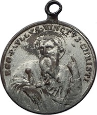 See it here here: https://www.ebay.com/itm/1910-1930s-BELGIUM-Christian-Medal-Pendant-w-SAINT-PAUL-Chi-Rho-i68231/232798144096?hash=item3633d9c660:g:llYAAOSwlCdbGdxS