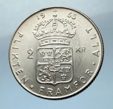 1965 SWEDEN King GUSTAV VI ADOLF 2 Kronor LARGE Silver SWEDISH Coin i68225 – Shawn Urquhart