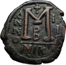 JUSTIN II & Sophia 565AD Nicomedia Follis Genuine Ancient Byzantine Coin i69832
